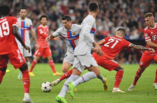 മ്യൂണിക്ക്: ചാമ്പ്യന്‍സ് ലീഗില്‍ വീണ്ടും ബയേണിന് മുന്‍പില്‍ വീണ് ബാഴ്‌സ. ഗ്രൂപ്പ് സിയിലെ പോരാട്ടത്തില്‍ എതിരില്ലാത്ത രണ്ട് ഗോളിനാണ് ഇത്തവണ ബാഴ്‌സക്കെതിരെ ബയേണ്‍ ജയം പിടിച്ചത്. അവസരങ്ങള്‍ മുതലാക്കാന്‍ ലെവന്‍ഡോസ്‌കിക്ക് കഴിയാതിരുന്നതോടെ ബയേണിന് എതിരെ തുടര്‍ച്ചയായ മൂന്നാം മത്സരത്തിലും ഗോള്‍ വല കുലുക്കാന്‍ ബാഴ്‌സയ്ക്കായില്ല.