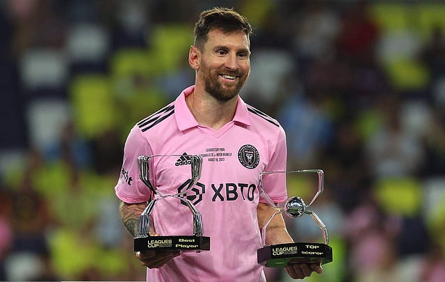 എസ്സി നാഷ്വില്ലയെ പെനാല്റ്റി ഷൂട്ടൗട്ടില് 10-9നു വീഴ്ത്തി മയാമി കന്നി കിരീട നേട്ടം ലീഗ്സ് കപ്പ് സ്വന്തമാക്കി ആഘോഷിച്ചപ്പോള് മെസിയുടെ സ്വന്തം ഷോക്കേസില് എത്തുന്നത് കരിയറിലെ 44ാം ട്രോഫി! ഫുട്ബോള് ചരിത്രത്തില് ഇത്രയും ട്രോഫി സ്വന്തമാക്കുന്ന ഏക താരമായി ഇതോടെ അര്ജന്റീന ഇതിഹാസം മാറി.