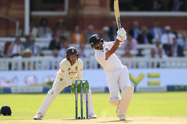 പിന്നാലെ കടുത്ത പ്രതിരോധം തീര്ത്ത രഹാനെ- ചേതേശ്വര് പൂജാര (45) സഖ്യമാണ് ഇന്ത്യയെ വൻ തകർച്ചയിൽ നിന്നും രക്ഷിച്ചത്. ഇരുവരും ചേർന്ന് 100 റണ്സ് കൂട്ടിച്ചേര്ത്തു. 206 പന്തില് നിന്നാണ് പൂജാര 45 റണ്സെടുത്തത്. മാർക്ക് വുഡിന്റെ പന്തില് ബട്ലര്ക്ക് ക്യാച്ച് നല്കിയാണ് പൂജാര മടങ്ങിയത്.
