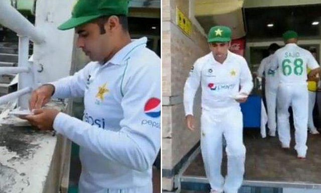 ബംഗ്ലാദേശിന് എതിരായ രണ്ടാം ടെസ്റ്റിന്റെ അഞ്ചാം ദിനമാണ് സംഭവം. ഉച്ചഭക്ഷണത്തിന്റെ ഇടവേളയില് ഡ്രസ്സിങ് റൂമില് നിന്ന് പ്ലേറ്റില് ഭക്ഷണം അബിദ് അലി പുറത്തേക്ക് കൊണ്ടുവന്നു. പിന്നാലെ ഡ്രസ്സിങ് റൂമിന് സമീപം നിന്നിരുന്ന പൂച്ചയ്ക്ക് ഇട്ടുകൊടുത്തു. അബിദിന്റെ മനസിന് വലിയ കയ്യടിയാണ് ആരാധകര് നല്കുന്നത്.