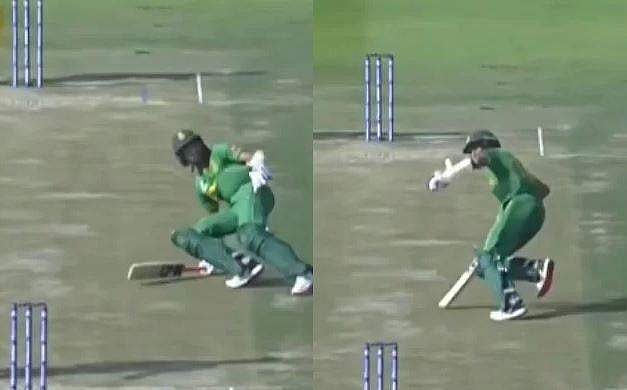 സൗത്ത് ആഫ്രിക്കന് ഇന്നിങ്സിന്റെ നാലാമത്തെ ഓവറിലാണ് ഡികോക്കിന്റെ വിക്കറ്റ് നിര്ഭാഗ്യം കാരണം നഷ്ടമായത്. ഹെയ്സല്വുഡിന്റെ ഗുഡ് ലെങ്ത് ഡെലിവറിയില് ഷോര്ട്ട് ഫൈന് ലെഗ്ഗിലേക്ക് സ്കൂപ്പ് ചെയ്യാന് ശ്രമിച്ചെങ്കിലും പാഡില് തട്ടി പന്ത് ഉയര്ന്ന് സ്റ്റംപിലേക്കാണ് വന്ന് വീണത്.