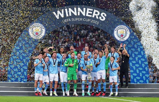 ഏഥന്സ്: കന്നി ചാമ്പ്യന്സ് ലീഗ് കിരീടത്തിനു പിന്നാലെ യുവേഫ സൂപ്പര് കപ്പ് കിരീടവും സ്വന്തമാക്കി ഇംഗ്ലീഷ് വമ്പന്മാരായ മാഞ്ചസ്റ്റര് സിറ്റി. യുവേഫ യൂറോപ്പ ലീഗ് ചാമ്പ്യന്മാരായ സെവിയ്യയെ പെനാല്റ്റി ഷൂട്ടൗട്ടില് വീഴ്ത്തിയാണ് സിറ്റിയുടെ കിരീട ധാരണം.
