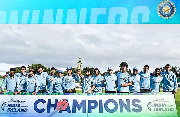 ഡബ്ലിൻ: അയർലൻഡിനെതിരായ മൂന്നാം ടി20 പോരാട്ടം കനത്ത മഴയെ തുടർന്നു ഉപേക്ഷിച്ചു. പരമ്പര നേരത്തെ തന്നെ ഇന്ത്യ 2-0ത്തിനു ഉറപ്പിച്ചിരുന്നു. ആദ്യ പോരാട്ടത്തിൽ ഡെക്ക്വർത്ത് ലൂയീസ് നിയമമനുസരിച്ച് ഇന്ത്യ രണ്ട് റണ്ണിന്റെ വിജയം സ്വന്തമാക്കിയപ്പോൾ രണ്ടാം പോരാട്ടം പൂർണമായി നടന്നു. 33 റൺസിനായിരുന്നു ഇന്ത്യൻ ജയം.