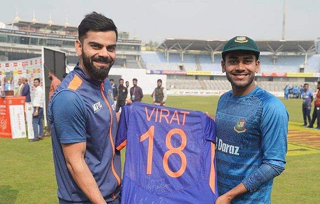മെഹ്ദി ഹസന്റെ ഭീഷണിയേയും മറികടന്ന് അശ്വിനും ശ്രേയസ് അയ്യരും ചേര്ന്ന് ഇന്ത്യയെ ജയത്തിലേക്ക് എത്തിച്ചു. ജയത്തിന് പിന്നാലെ മെഹ്ദി ഹസന് ജഴ്സി സമ്മാനമായി നല്കുകയായിരുന്നു കോഹ്ലി.