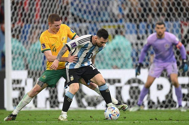 ദോഹ: ലോകകപ്പ് നോക്കൗട്ടില്‍ ആദ്യമായി മെസി വലയിലാക്കിയ ഗോളിന്റെ ഭംഗിയില്‍ മതിമറന്നിരിക്കുകയാണ് ലോകം. ഓസ്‌ട്രേലിയയുടെ 9 കളിക്കാര്‍ ബോക്‌സിനുള്ളിലുണ്ടായിട്ടും വല കുലുക്കാന്‍ മെസി വഴി കണ്ടെത്തി. ലോകകപ്പില്‍ അര്‍ജന്റീനക്കായി ഏറ്റവും കൂടുതല്‍ ഗോള്‍ നേടിയ താരം എന്ന നേട്ടമാണ് ഇപ്പോള്‍ മെസിയുടെ മുന്‍പിലെത്തി നില്‍ക്കുന്നത്.