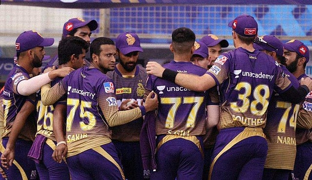 നിർണായകമായ നാല് വിക്കറ്റുകൾ വീഴ്ത്തി സുനിൽ നരെയ്ന്റെ പന്തുകൾ മാന്ത്രികത കൈവരിച്ചപ്പോൾ ആദ്യം ബാറ്റ് ചെയ്ത റോയൽ ചലഞ്ചേഴ്സ് ബാംഗ്ലൂരിന്റെ പുകഴ്പ്പെറ്റ ബാറ്റിങ് നിരയ്ക്ക് അടിതെറ്റി. ടോസ് നേടി ബാംഗ്ലൂർ ബാറ്റിങ് തിരഞ്ഞെടുക്കുകയായിരുന്നു. ക്യാപ്റ്റൻ വിരാട് കോഹ്ലിയും മലയാളി താരം ദേവ്ദത്ത് പടിക്കലും ചേർന്ന് മികച്ച തുടക്കമാണ് നൽകിയത്. സ്കോർ 49ൽ നിൽക്കെ ദേവ്ദത്തിനെ പുറത്താക്കി ലോക്കി ഫെർഗൂസൻ ക്ലീൻ ബൗൾഡാക്കിയതോടെ കൊൽക്കത്ത കളിയിലേക്ക് തിരിച്ചെത്തി. 18 പന്തിൽ 21 റൺസായിരുന്നു താരത്തിന്റെ സമ്പാദ്യം.