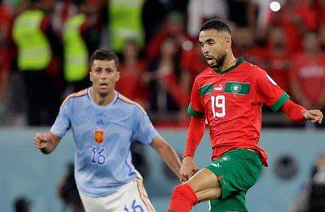 എന്നാല് സ്പെയിനിന്റെ തനത് പൊസഷന് ഗെയിം കളിക്കാന് വിടാതെ ഫിസിക്കല് ഗെയിം കളിച്ച് പന്ത് റാഞ്ചി അതിവേഗം കൗണ്ടര് അറ്റാക്കിനിറങ്ങുക എന്നതായിരുന്നു മൊറോക്കോയുടെ പദ്ധതി. വലതുവിങ്ങില് അഷ്റഫ് ഹക്കീമിയുടെയും ഹക്കീം സിയെച്ചിന്റെയും സാന്നിധ്യം അവര്ക്ക് മുന്തൂക്കം നല്കി.