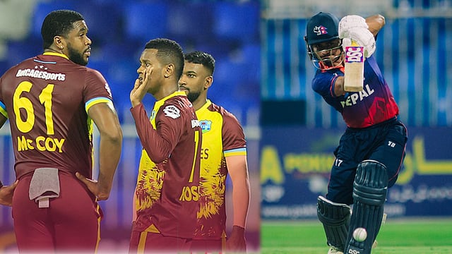 ഷാര്ജയില് അരങ്ങേറിയ നേപ്പാള്- വെസ്റ്റ് ഇന്ഡീസ് ടി20 പരമ്പരയിലെ ആദ്യ പോരില് 19 റണ്സിനാണ് അവര് അട്ടിമറി വിജയം സ്വന്തമാക്കിയത്. ആദ്യം ബാറ്റ് ചെയ്ത നേപ്പാള് 8 വിക്കറ്റ് നഷ്ടത്തില് 148 റണ്സാണ് അടിച്ചെടുത്തത്. വിന്ഡീസിന്റെ പോരാട്ടം 20 ഓവറില് 9 വിക്കറ്റ് നഷ്ടത്തില് 129 റണ്സില് അവസാനിപ്പിക്കാന് നേപ്പാളിനു സാധിച്ചു.