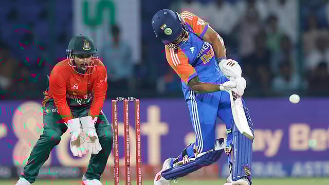 ടോസ് നഷ്ടപ്പെട്ട് ബാറ്റിങ്ങിനിറങ്ങിയ ഇന്ത്യയ്ക്ക് തുടക്കത്തില് തന്നെ സഞ്ജു സാംസണെ നഷ്ടമായി. ഏഴ് പന്തില് പത്ത് റണ്സെടുത്ത സഞ്ജു ഷാന്റോയുടെ പന്തില് പുറത്താകുകയായിരുന്നു. പിന്നാലെ 11 പന്തില് 15 റണ്സ് നേടിയ അഭിഷേക് ശര്മയും പുറത്തായി. 25 ന് രണ്ട് എന്ന നിലയിലായ ഇന്ത്യയെ നായകന് സൂര്യകുമാറും നിതീഷ് റെഡ്ഡിയും ചേര്ന്ന് സ്കോര് മുന്നോട്ട് കൊണ്ടുപോയെങ്കിലും എട്ട് റണ്സെടുത്ത് സൂര്യകുമാറും മടങ്ങി.