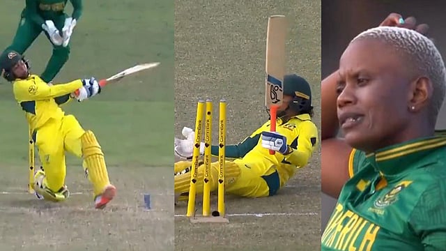 ഓസ്ട്രലിയയുടെ ബാറ്റിങിന്റെ 48ാം ഓവറിലാണ് സംഭവം. ദക്ഷിണാഫ്രിക്കയുടെ മസബാറ്റ ക്ലാസ് എറിഞ്ഞ പന്ത് നേരിട്ടത് അലന കിങ്. താരത്തിന്റെ പന്ത് ഉയര്ന്നാണ് വന്നത്. അതിനെ അലന സിക്സര് തൂക്കി. സിക്സിനുള്ള ശ്രമത്തിനിടെ അലനയുടെ ബാറ്റ് സ്റ്റംപില് കൊണ്ടു ബെയ്ലുകള് വീണിരുന്നു. എന്നാല് അമ്പയര് നോ ബോള് വിളിച്ചു. ഇതോടെ താരം ഔട്ടായില്ല. സിക്സും എക്സ്ട്രയുമടക്കം ഒറ്റ പന്തില് ഏഴ് റണ്സും ഓസീസിനു ലഭിച്ചു.