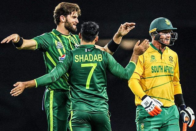 സിഡ്നി: ടി20 ലോകകപ്പ് സൂപ്പര് 12ല് ദക്ഷിണാഫ്രിക്കക്കെതിരായ നിര്ണായക പോരാട്ടത്തില് പാകിസ്ഥാന് ജയം. മഴയെ തുടര്ന്ന് 14 ഓവറില് 142 ആയി പുനര് നിര്ണയിച്ചപ്പോള് 33 റണ്സിനാണ് അവര് വിജയിച്ചത്. 14 ഓവറിൽ 108 റൺസിൽ ദക്ഷിണാഫ്രിക്കയുടെ പോരാട്ടം അവസാനിച്ചു. ജയത്തോടെ അടുത്ത ഘട്ടത്തിലേക്കുള്ള നേരിയ സാധ്യത പാകിസ്ഥാന് നിലനിര്ത്തി. ദക്ഷിണാഫ്രിക്കയ്ക്ക് അടുത്ത കളി നിര്ണായകമായി.