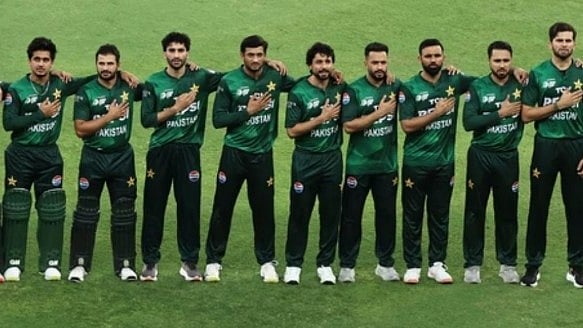 ദേശീയ ഗാനത്തിനായി പാക് താരങ്ങൾ നെഞ്ചിൽ കൈവച്ച് നിന്നപ്പോൾ ഉയർന്നത് 'ജലേബി ബേബി' എന്ന ഗാനമാണ്. ഇതുകേട്ട് പാക് താരങ്ങൾ ആകെ ആശയക്കുഴപ്പത്തിലാകുന്നുണ്ട്. ഇത് വിഡിയോയിൽ കാണാം. പാക് മന്ത്രി മൊഹ്സിൻ നഖ്വിയാണ് ഏഷ്യൻ ക്രിക്കറ്റ് കൗൺസിൽ തലവൻ എന്നിരിക്കെ ഇത്തരമൊരു അബദ്ധം സംഭവിച്ചത് പാക് ക്രിക്കറ്റിനു ആകെ നാണക്കേടായി മാറി.