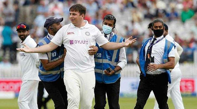 ലോര്‍ഡ്‌സ് ടെസ്റ്റിന് ഇടയില്‍ ഗ്രൗണ്ടിലെത്തിയ ആരാധകനെ സുരക്ഷ ഉദ്യോഗസ്ഥര്‍ മാറ്റുന്നു/ഫോട്ടോ: ട്വിറ്റര്‍