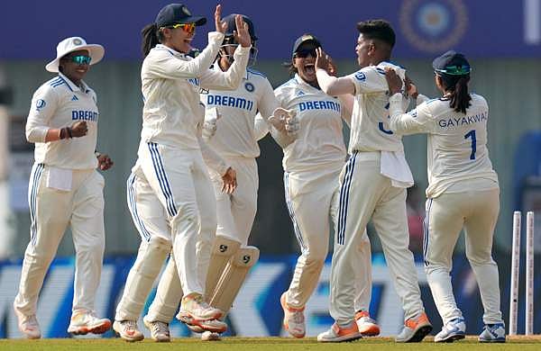 ഒന്നാം ഇന്നിങ്സില് അഞ്ച് വിക്കറ്റുകള് പിഴുത ദീപ്തി ശര്മയുടെ മികവാണ് ഇംഗ്ലണ്ടിന്റെ നടുവൊടിച്ചത്. 59 റണ്സെടുത്ത നാറ്റ് സീവര് മാത്രമാണ് ചെറുത്തു നിന്നത്. മറ്റൊരാള്ക്കും കാര്യമായി തിളങ്ങാനായില്ല.