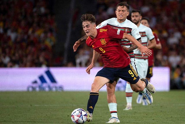 സെവിയ്യ: യുവേഫ നേഷന്സ് ലീഗില് പോര്ച്ചുഗല്-സ്പെയ്ന് പോര് സമനിലയില് കലാശിച്ചു. 25ാം മിനിറ്റില് മോറാട്ടയിലൂടെ നേടിയ ഗോളിന് റിക്കാര്ഡോ ഹോര്ട്ടയിലൂടെ 82ാം മിനിറ്റില് മറുപടി നല്കിയാണ് പോര്ച്ചുഗല് സമനില പിടിച്ചത്. സൂപ്പര് താരം ക്രിസ്റ്റ്യാനോ റൊണാള്ഡോ രണ്ടാം പകുതിയില് സബ്സ്റ്റിറ്റിയൂട്ടായി ഇറങ്ങിയെങ്കിലും ഇവിടെ കയ്യടി നേടിയത് സ്പെയ്നിന്റെ കൗമാരതാരം ഗവിയാണ്.