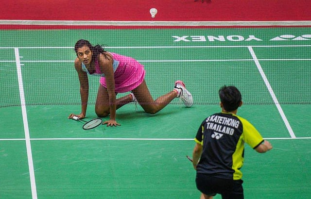 മത്സരത്തിനിടെ പിവി സിന്ധു/ പിടിഐ