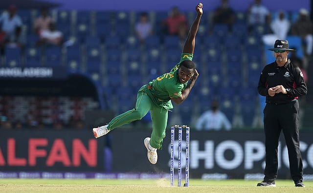 തന്റെ ആദ്യ മൂന്ന് ഓവറിലേക്ക് എത്തിയപ്പോള് തന്നെ റബാഡ മൂന്ന് വിക്കറ്റ് വീഴ്ത്തി കഴിഞ്ഞു. 12 റണ്സിന് ഇടയിലാണ് ബംഗ്ലാദേശിന്റെ അഞ്ച് വിക്കറ്റുകള് വീണത്. ഓപ്പണര് ലിറ്റന് ദാസ് മാത്രമാണ് അല്പ്പമെങ്കിലും പിടിച്ചു നില്ക്കാന് ശ്രമിച്ചത്. സൗത്ത് ആഫ്രിക്കന് പേസര്മാരുടെ ആക്രമണത്തിന് പിന്നാലെ വന്ന സ്പിന്നര് ശംസിയും വിക്കറ്റ് വീഴ്ത്തി.