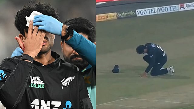 ലാഹോറിലെ ഗദ്ദാഫി സ്റ്റേഡിയത്തില് പാകിസ്താനെതിരായ മത്സരത്തില് ക്യാച്ചെടുക്കാന് ശ്രമിക്കുന്നതിനിടെ പന്ത് നേരേ രചിന് രവീന്ദ്രയുടെ നെറ്റിയിലിടിക്കുകയായിരുന്നു. നെറ്റിയില് നിന്ന് ചോര വാര്ന്നതോടെ താരം കളം വിടുകയും ചെയ്തു. പാകിസ്താന് ബാറ്റിങ്ങിനിടെ 38-ാം ഓവറിലായിരുന്നു സംഭവം. പാക് താരം ഖുഷ്ദില് ഷാ സ്വീപ് ചെയ്ത പന്ത് പിടിക്കാനുള്ള ശ്രമത്തില് പന്ത് കൃത്യമായി ജഡ്ജ് ചെയ്യാന് താരത്തിന് സാധിച്ചില്ല. പന്ത് നെറ്റിയില് കൊണ്ടതോടെ ചോരയും വരാന് തുടങ്ങിയിരുന്നു. ഉടന് തന്നെ മെഡിക്കല് സംഘമെത്തി താരത്തെ ഗ്രൗണ്ടില് നിന്നും മാറ്റുകയായിരുന്നു.