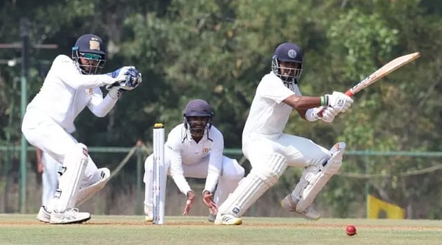 വിക്കറ്റ് നഷ്ടമില്ലാതെ 10 റണ്സെന്ന നിലയില് നാലാം ദിനം ക്രീസിലത്തിയ കേരളത്തിന് സ്കോര് 19 റണ്സിലെത്തിയപ്പോള് ആദ്യ തിരിച്ചടിയേറ്റു. നൈറ്റ് വാച്ച്മാനായി മൂന്നാം ദിനം ക്രീസിലെത്തിയ നിധീഷ് എംഡിയെ(9) വിദ്യുത് കവേരപ്പ വീഴ്ത്തി. മൂന്നാം നമ്പറിലെത്തിയ അക്ഷയ് ചന്ദ്രനെ ഗോള്ഡന് ഡക്കാക്കി കവേരപ്പ കേരളത്തെ ഞെട്ടിച്ചു. ക്യാപ്റ്റന് മുഹമ്മദ് അസറുദ്ദീനും കൃഷ്ണപ്രസാദും പൊരുതുമെന്ന് കരുതിയെങ്കിലും 15 റണ്സെടുത്ത അസറുദ്ദീനെ ശിഖര് ഷെട്ടി മടക്കി. ഇതോടെ കേരളം 40-3ലേക്ക് വീണ് തകര്ച്ചയിലായി. അഹമ്മദ് ഇമ്രാനും കൃഷ്ണപ്രസാദും ചേര്ന്ന് നാലാം വിക്കറ്റില് 57 റണ്സ് കൂട്ടുകെട്ടുയര്ത്തി കേരളത്തിന് പ്രതീക്ഷ നല്കിയെങ്കിലും കൃഷ്ണ പ്രസാദിനെ(33)യും അഹമ്മദ് ഇമ്രാനെയും(23) വീഴ്ത്തിയ മൊഹ്സിന് ഖാന് ഇരട്ടപ്രഹരമേല്പ്പിച്ചതോടെ കേരളം 106-5ലേക്ക് വീണു.