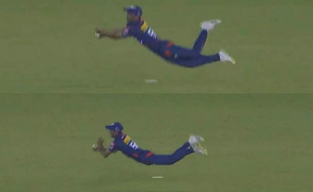 പോയിന്റിലായിരുന്നു ബിഷ്ണോയ് നിന്നിരുന്നത്. ക്യച്ചെടുക്കാനുള്ള ശ്രമമാണ് താരം നടത്തിയതെങ്കിലും പന്ത് കൈയില് ഒതുക്കാന് സാധിച്ചില്ല. ബൗണ്ടറി കടക്കുന്നത് തടയാന് പറക്കും ഫീല്ഡിങിലൂടെ സാധിക്കുകയും ചെയ്തു.