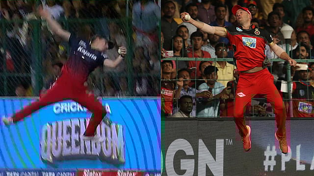സിക്സര് തടയാനായി വേരം നടത്തിയ അക്രോബാറ്റിക്ക് ശ്രമമാണ് ഫാന്സിന്റെ കൈയടി നേടുന്നത്. വായുവില് ഉയര്ന്നു പൊങ്ങി താരം നടത്തിയ ശ്രമത്തെ ആര്സിബി ആരാധകര് ഉപമിക്കുന്ന ഇതിഹാസ ദക്ഷിണാഫ്രിക്കന് താരം എബി ഡിവില്ല്യേഴ്സിന്റെ പ്രകടനത്തോടാണ്. സമാന രീതിയില് ഐപിഎല്ലില് ഡിവില്ല്യേഴ്സിന്റെ ഒരു അക്രോബാറ്റിക്ക് ശ്രമം ഉണ്ടായിരുന്നു.