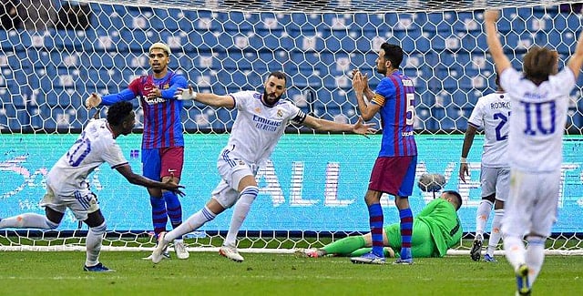 രണ്ടാം പകുതിയില് 72ാം മിനിറ്റിലാണ് റയല് ലീഡ് എടുത്തത്. ബോക്സിനകത്തെ ബെന്സെമയുടെ മുന്നേറ്റമാണ് ലീഡ് എടുക്കാന് റയലിനെ തുണച്ചത്. മെന്ഡി നല്കിയ പാസില് നിന്നും ബെന്സമ ഉതിര്ത്ത ഷോട്ട് ബാഴ്സ ഗോള്കീപ്പര് തടഞ്ഞിട്ടു. എന്നാല് ഗോള്കീപ്പറുടെ ക്ലിയറന്സില് നിന്ന് വന്ന പന്ത് കാര്വാലിന്റെ അടുത്തേക്ക്. ക്രോസ് കൊടുക്കാനുള്ള കാര്വാലിന്റെ ശ്രമം ഗോള്കീപ്പര് തടഞ്ഞെങ്കിലും പന്ത് വീണ്ടും ബെന്സെമയുടെ നേരെ എത്തി. അവിടെ ഗോള് വല കുലുക്കുന്നതില് ബെന്സെമയ്ക്ക് പിഴച്ചില്ല.