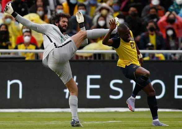 ക്വിറ്റോ: ലോകകപ്പ് യോഗ്യതാ മത്സരത്തിൽ ഇക്വഡോറിന് എതിരെ രണ്ട് വട്ടം ചുവപ്പുകാർഡ് കണ്ടിട്ടും രക്ഷപെട്ട് ബ്രസീൽ ഗോൾകീപ്പർ ആലിസൺ ബെക്കർ. ആദ്യ 30 മിനിറ്റ് തന്നെ ഇരു ടീമിലേയും ഓരോ കളിക്കാർ വീതം ചുവപ്പു കാർഡ് വാങ്ങി പുറത്തേക്ക് പോയി.