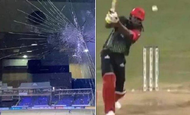 ടൂര്ണമെന്റിലേക്ക് തിരിച്ചെത്തുന്ന ഗെയ്ലിലേക്കായിരുന്നു ശ്രദ്ധയെല്ലാം. ഡ്വെയ്ന് ബ്രാവോയുടെ സെന്റ് കിറ്റ്സിന് വേണ്ടി കളിക്കുന്ന ഗെയ്ല് അഞ്ചാം ഓവറില് ജാസന് ഹോള്ഡറിന്റെ ഡെലിവറിയില് കൂറ്റന് സിക്സ് പറത്തി. സൈറ്റ്സ്ക്രീന് കടന്നു പോയ ഗെയ്ല് അതിന് പിന്നിലെ വിന്ഡോ തകര്ത്തു.