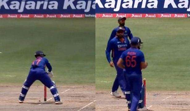 സ്റ്റംപ് ഇളക്കാന് മനപൂര്വം വൈകിപ്പിച്ചതിന് പന്തിനോട് രോഹിത് കലിപ്പിക്കുകയും ചെയ്തു. വിന്ഡിസ് ഇന്നിങ്സിന്റെ അഞ്ചാമത്തെ ഓവറിലാണ് സംഭവം. നികോളാസ് പൂരനും മയേഴ്സും തമ്മില് സിംഗിളിനായുള്ള ഓട്ടത്തിനിടയില് ആശയക്കുഴപ്പമുണ്ടായി.