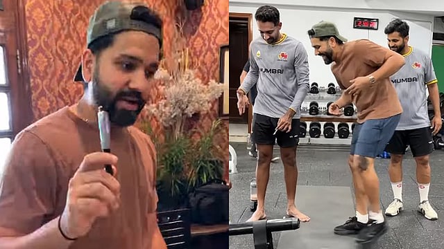 പിന്നീട് ഇതേ പേനയുമായി താരം മുംബൈ ടീമിലെ സഹ താരമായിരുന്ന പേസര് ധവാല് കുല്ക്കര്ണിക്കു അരികിലേക്ക് പോകുന്നു. താരം ജമ്മില് വര്ക്ക്ഔട്ട് ചെയ്യുന്നതിനിടെയാണ് പേനയുമായി രോഹിത് എത്തിയത്. ഇരുവര്ക്കുമൊപ്പം സമീപത്ത് ശാര്ദുല് ഠാക്കൂറിനേയും കാണാം.