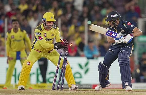 ഫൈനലിൽ മികച്ച തുടക്കമാണ് ടൈറ്റൻസിനായി ഓപ്പണിംഗ് വിക്കറ്റിൽ ശുഭ്മാൻ ഗില്ലും വൃദ്ധിമാൻ സാഹയും നൽകിയത്. തുഷാർ ദേശ്പാണ്ഡെ എറിഞ്ഞ രണ്ടാം ഓവറിൽ ശുഭ്മാൻ ഗിൽ നൽകിയ അനായാസ ക്യാച്ച് ദീപക് ചാഹർ വിട്ടുകളഞ്ഞത് ചെന്നൈ ആരാധകരെ നിരാശപ്പെടുത്തി. എന്നാൽ ഏഴാം ഓവറിൽ ഗിൽ ധോനിയുടെ കിടിലൻ സ്റ്റംപിങ്ങിൽ കുടുങ്ങി. രവീന്ദ്ര ജഡേജ എറിഞ്ഞ ബോൾ ഗിൽ തകർത്തടിക്കാൻ ശ്രമിച്ചപ്പോൾ അതിവേഗ സ്റ്റംപിംഗുമായി അമ്പരപ്പിക്കുകയായിരുന്നു ധോനി. 20 ബോളിൽ നിന്ന് 39 റൺസാണ് ഗില്ലിന്റെ സമ്പാദ്യം.