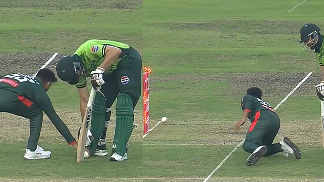 ക്രീസില് മുഹമ്മദ് റിസ്വാനും നോണ് സ്ട്രൈക്കില് ആഘയുമായിരുന്നു. പന്തെറിഞ്ഞത് ബംഗ്ലാദേശ് ക്യാപ്റ്റന് മെഹദി ഹസന് മിറാസും. റിസ്വാന് അടിച്ച പന്ത് നേരെ ക്രീസിനു പുറത്തു നിന്ന ആഘയുടെ നേര്ക്കാണ് വന്നത്. അതിനിടെ ആഘയെ തടസപ്പെടുത്തി മെഹദി സഹന് പന്ത് കാല് കൊണ്ടു തടുത്തിട്ടു. സല്മാന് ആഘ മെഹദി ഹസനെ സഹായിക്കുന്നതിനായി പന്തെടുക്കാന് കുനിയുന്നതിനിടെ ബംഗ്ലാ നായകന് പന്ത് അതിലും വേഗത്തില് കുനിഞ്ഞെടുത്ത് തിരികെ സ്റ്റംപിനെറിഞ്ഞു കൊള്ളിച്ചു. ഈ സമയത്ത് ആഘ ക്രീസിനു പുറത്തു തന്നെ നില്ക്കുകയായിരുന്നു.