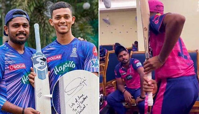 ഡ്രസ്സിങ് റൂമില് വെച്ച് സഞ്ജുവിന്റെ ബാറ്റ് നോക്കുന്ന യശസ്വിയുടെ വീഡിയോ രാജസ്ഥാന് റോയല്സ് നേരത്തെ പങ്കുവെച്ചിരുന്നു. നിന്റെ റൂമില് ഇന്നൊരു പുതിയ ബാറ്റ് എത്തും. ഉറപ്പായും. ആശങ്ക വേണ്ട. നിന്റെ മൂത്ത ജേഷ്ഠന്റെ സമ്മാനം. നിന്റെ ചേട്ടന്റെ സമ്മാനം എന്നാണ് സഞ്ജു വീഡിയോയില് യശസ്വിയോട് പറയുന്നത്.
