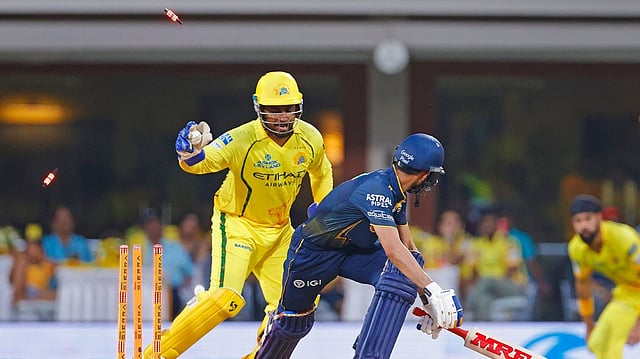 159 റണ്സ് വിജയ ലക്ഷ്യത്തിലേക്ക് ബാറ്റെടുത്ത ഗുജറാത്തിനായി ക്യാപ്റ്റന് ശുഭ്മാന് ഗില് മിന്നും തുടക്കമാണ് നല്കിയത്. മറുഭാഗത്ത് സഹ ഓപ്പണര് സായ് സുദര്ശനും മികവില് തുടരുന്നുണ്ടായിരുന്നു. 23 പന്തില് 3 സിക്സും ഒരു ഫോറും സഹിതം 33 റണ്സെടുത്തു നില്ക്കെ ഗില്ലിനെ മിന്നല് സ്റ്റംപിങിലൂടെ സഞ്ജു പുറത്താക്കിയാണ് ചെന്നൈക്ക് ആശ്വാസം നല്കിയത്.