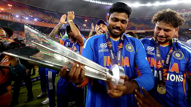 ഒട്ടേറെ റെക്കോര്ഡ് നേട്ടങ്ങളുടെ പകിട്ടുമായാണ് മലയാളികളുടെ അഭിമാന താരം തലയുയര്ത്തി നില്ക്കുന്നത്. ഒരു ടി20 ലോകകപ്പ് ഫൈനലില് ഏറ്റവും ഉയര്ന്ന വ്യക്തിഗത സ്കോര് നേടുന്ന താരം, ഒരു ടി20 ലോകകപ്പില് ഏറ്റവും കൂടുതല് റണ്സ് നേടുന്ന ഇന്ത്യന് താരം, സെമിയിലും ഫൈനലിലും അര്ധ സെഞ്ച്വറി നേടുന്ന താരങ്ങളുടെ എലീറ്റ് പട്ടികയിലും സഞ്ജു ഇടം പിടിച്ചു.