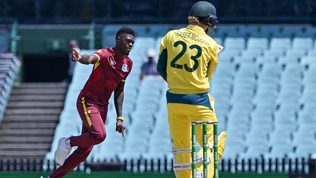 തുടക്കത്തിൽ ഗുഡാകേഷ് മോട്ടിയുടെ ബൗളിങാണ് ഓസീസിനെ വട്ടം കറക്കിയത്. താരം പത്തോവറിൽ 28 റൺസ് മാത്രം വഴങ്ങി മൂന്ന് വിക്കറ്റുകൾ വീഴ്ത്തി. അൽസാരി ജോസഫ്, റൊമേരിയോ ഷെഫേർഡ് എന്നിവർ രണ്ട് വീതം വിക്കറ്റുകളും സ്വന്തമാക്കി. മാത്യു ഫോർഡ്, ഒഷെയ്ൻ തോമസ് എന്നിവർ ഓരോ വിക്കറ്റെടുത്തു.