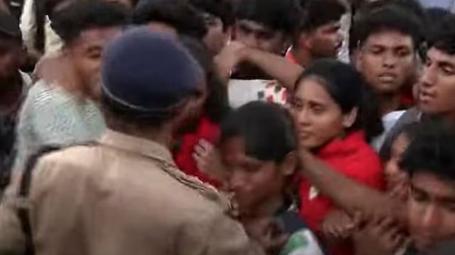 കായിക മന്ത്രി വി.അബ്ദുറഹിമാന് ആദ്യഘട്ടത്തില് ചര്ച്ച നടത്തിയെങ്കിലും പരിഹാരം കണ്ടെത്താന് സാധിച്ചിരുന്നില്ല. തുടര്ന്ന് വിദ്യാഭ്യാസ മന്ത്രി വി ശിവന്കുട്ടി കുട്ടികളും സ്കൂള് അധികൃതരും രക്ഷിതാക്കളുമായി സംസാരിക്കുകയും വിഷയത്തില് പരിഹാരം ഉണ്ടാകുമെന്ന് അറിയിക്കുകയും ചെയ്തു. എന്നാല് ഇതിന് പിന്നാലെ പൊലീസ് വി ശിവന് കുട്ടിയെ സംഭവസ്ഥലത്ത് നിന്ന് മാറ്റി. തുടര്ന്ന് പ്രതിഷേധിച്ച വിദ്യാര്ഥികളെ പൊലീസ് ഉദ്യോഗസ്ഥര് മര്ദിച്ചെന്നാണ് ആരോപണം. പ്രതിഷേധം ശക്തമായതിനെ തുടര്ന്ന് സമാപന ചടങ്ങ് വേഗത്തില് അവസാനിപ്പിച്ചു.