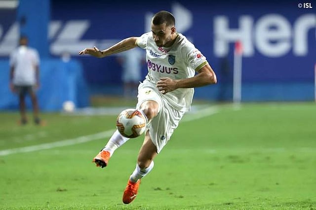 മത്സരം തുടങ്ങി ആദ്യ മിനിട്ടുകളില് തന്നെ ഇരുടീമുകളും ആക്രമിച്ചാണ് കളിച്ചത്. ബ്ലാസ്റ്റേഴ്സിന്റെ നിരന്തര ആക്രമണങ്ങളുടെ ഫലമായി 22-ാം മിനിട്ടില് ടീം ഗോള് നേടി. പ്രതിരോധ താരം കോസ്റ്റ നമോണൈസുവാണ് ടീമിനായി ഗോള് നേടിയത്. താരത്തിന്റെ ഈ സീസണിലെ ആദ്യ ഗോളാണിത്. മികച്ച ആക്രമണം പുറത്തെടുത്തതിന്റെ ഭാഗമായാണ് ഗോള് പിറന്നത്. മധ്യനിരതാരം ഫക്കുണ്ടോ പെരേരയുടെ ഫ്രീകിക്കില് നിന്നാണ് ഗോള് പിറന്നത്. കിക്ക് സ്വീകരിച്ച കോസ്റ്റ തലകൊണ്ട് പന്തിനെ പോസ്റ്റിലേക്ക് ചെത്തിയിട്ടു. ഇതോടെ കേരള ബ്ലാസ്റ്റേഴ്സ് 1-0 ന് മുന്നിലെത്തി.