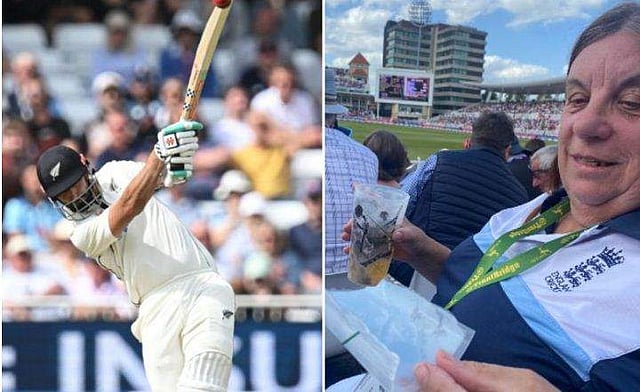 ബിയര് പോയത് കമന്റേറ്ററും ചൂണ്ടിക്കാണിച്ചു. ഇവിടെ ബൗണ്ടറി ലൈനിന് സമീപം ഫീല്ഡ് ചെയ്തിരുന്ന മാത്യുസ് പോട്സും ബിയര് പോയതായി സഹതാരങ്ങളെ ആംഗ്യത്തിലൂടെ അറിയിച്ചു. പിന്നാലെയാണ് ആരാധികയ്ക്ക് ന്യൂസിലന്ഡ് ടീം പകരം ബിയര് നല്കിയതായി ഇംഗ്ലീഷ് ബാര്മി ആര്മി അറിയിച്ചത്.