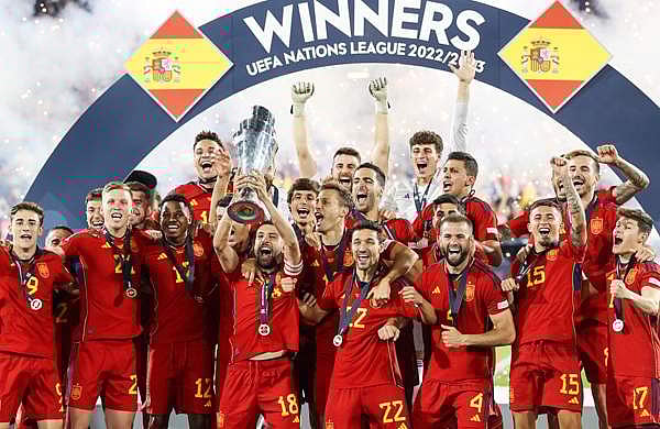 റോട്ടർഡാം: യുവേഫ നേഷൻസ് ലീഗിലെ കന്നി കിരീടം സ്വന്തമാക്കി സ്പെയിൻ. കലാശപ്പോരാട്ടത്തിൽ ക്രൊയേഷ്യയെ ഷൂട്ടൗട്ടിൽ തകർത്താണ് സ്പെയിൻ കിരീടം ചൂടിയത് (5-4).