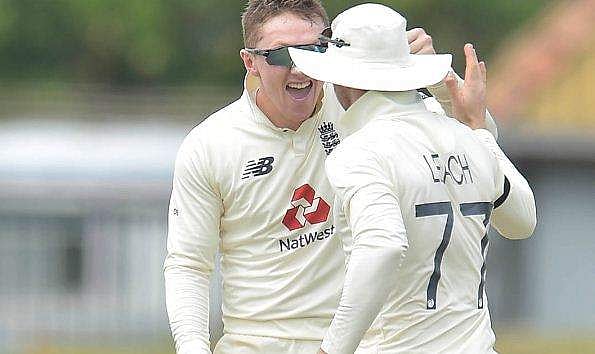 വിക്കറ്റ് ലങ്കയെ തകര്‍ത്ത ഡോം ബെസിനെ അഭിനന്ദിക്കുന്ന ലീച്ച്: ഫോട്ടോ: ഇംഗ്ലണ്ട് ക്രിക്കറ്റ് ബോര്‍ഡ്, ട്വിറ്റര്‍