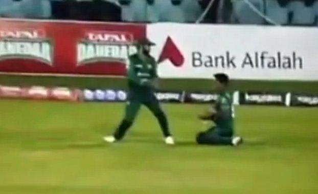 പാക് താരങ്ങളായ മുഹമ്മദ് ഹസ്നെയ്നും അഫ്തിക്കര് അഹ്മദുമാണ് എളുപ്പം പിടിക്കാവുന്ന ക്യാച്ച് നഷ്ടപ്പെടുത്തിയത്. 2008ല് അജ്മല്-മാലിക് സഖ്യം ഇതുപോലെ ആശയക്കുഴപ്പത്തില് ക്യാച്ച് നഷ്ടപ്പെടുത്തിയിരുന്നു.