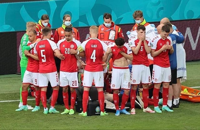 42ാം മിനിറ്റിലാണ് എറിക്സൺ ഫുട്ബോൾ ലോകത്തിന്റെ ശ്വാസം നിലപ്പിച്ച് കൊണ്ട് ഗ്രൗണ്ടിൽ കുഴഞ്ഞു വീണത്. ഗ്രൗണ്ടിൽ വെച്ച് തന്നെ എറിക്സണിന് പ്രാഥമിക ചികിത്സ നൽകി. കാർഡിയാക് മസാജ് നൽകിയാണ് എറിക്സണിനെ തിരിച്ചു പിടിച്ചതെന്നാണ് ഡെൻമാർക്ക് ടീം ഡോക്ടർ വെളിപ്പെടുത്തിയത്.