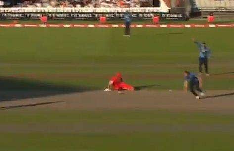 വിറ്റാലിറ്റി ബ്ലാസ്റ്റില്‍ യോര്‍ക്ഷയറും ലാന്‍കഷയറും തമ്മിലുള്ള മത്സരത്തിലാണ് സംഭവം. സിംഗിളിനായി ഓടുന്നതിന് ഇടയില്‍ ലാന്‍കഷയറിന്റെ സ്റ്റീവന്‍ ക്രോഫ്റ്റ് കാലിന് പരിക്കേറ്റ് വേദനകൊണ്ട് ഗ്രൗണ്ടിലേക്ക് വീഴുകയായിരുന്നു.