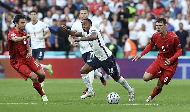 യൂറോപ്യന് ചാമ്പ്യന്ഷിപ്പിലെ ആദ്യത്തെ റഫറിയുടെ വിവാദ തീരുമാനം ഇംഗ്ലണ്ടിന് അനുകൂലമായി വന്നു. 103ാം മിനിറ്റില് പെനാല്റ്റി ഏരിയയില് മുന്നേറിയ റഹീം സ്റ്റെര്ലിങ്ങിന് ജോക്കിം മെഹ്ലെയുടെ ചലഞ്ചില് ബാലന്സ് നഷ്ടപ്പെട്ടു. മറ്റൊരു ഡെന്മാര്ക്ക് താരം ജെന്സെനിന്റെ തട്ടല് കൂടിയായപ്പോള് സ്റ്റെര്ലിങ് വീണു. ഇതോടെയാണ് റഫറി പെനാല്റ്റി സ്പോട്ടിലേക്ക് വിരല് ചൂണ്ടിയത്. എന്നാല് അവിടെ സ്റ്റെര്ലിങ്ങിനെ വീഴ്ത്താന് മാത്രമുള്ള ചലഞ്ച് വന്നിട്ടില്ലെന്നാണ് അഭിപ്രായം ഉയരുന്നത്.