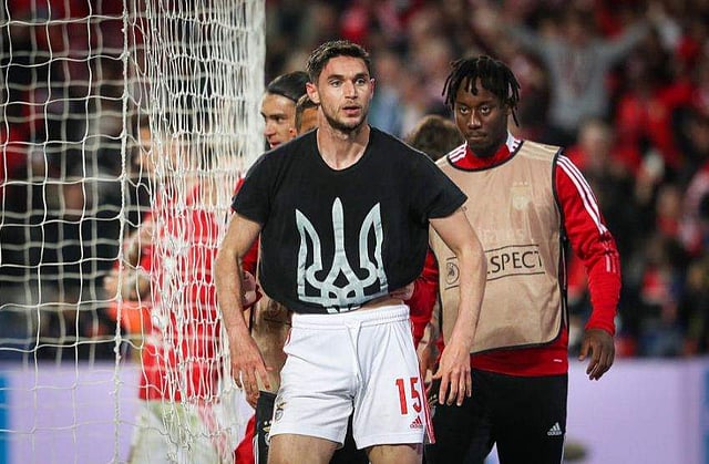 ജേഴ്സിക്ക് അടിയില് യുക്രൈനിയന് അസോസിയേഷന് ഓഫ് ഫുട്ബോളിന്റെ ലോഗോയുള്ള ഷര്ട്ട് അണിഞ്ഞാണ് യാരെംചുക് കളിച്ചത്. ഗോള് ആഘോഷം യുക്രൈനിന്റെ ചിഹ്നമുള്ള ടിഷര്ച്ച് ധരിച്ചും...