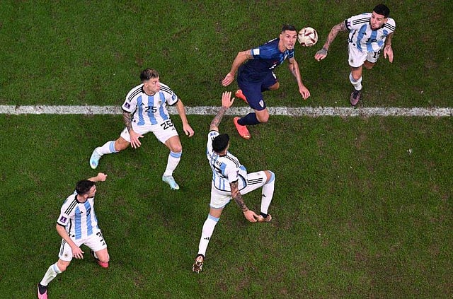 ടൂര്ണമെന്റിലെ തന്റെ ഏറ്റവും മികച്ച കളിയാണ് ഡി പോളില് നിന്ന് ക്രൊയേഷ്യക്കെതിരെ വന്നത്. മക്അലിസ്റ്റന് ഇടത് നിന്ന് സെന്ററിലേക്ക് വന്ന് മധ്യനിരയ്ക്കും മുന്നേറ്റനിരയ്ക്കുമിടയിലെ ലിങ്ക് ആയി. കോവിസിച്ചിനാണ് ആദ്യ പകുതിയില് അര്ജന്റൈന് മിഡ്ഫീല്ഡ് ലൈനിനെ മറികടന്ന് മുന്നേറുന്നതില് അല്പ്പമെങ്കിലും മുന്പോട്ട് പോകാനായത്. ക്രൊയേഷ്യന് മധ്യനിര സഖ്യത്തിന്റേത് ഷോര്ട്ട് ഡിസ്റ്റന്സ് പാസുകളായതോടെ ഷോര്ട്ട് റേഞ്ച് കവര് റണ്ണുമായി ഡി പോളും എന്സോയും മാറി മാറി എത്തി. കടുപ്പമേറിയ പ്രസ്സിങ് ഗെയും പന്ത് നഷ്ടപ്പെടുന്ന ഓരോ സമയത്തും നേരെ ചലഞ്ച് ചെയ്യാതെയുമാണ് അര്ജന്റീന കളിച്ചത്. പക്ഷേ കളിക്കുന്ന സ്പേസില് തങ്ങളുടെ നിയന്ത്രണം അവര് ഉറപ്പാക്കി.
