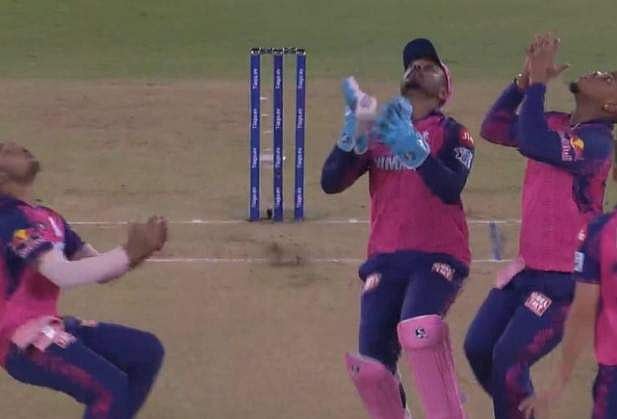 ടോസ് നഷ്ടപ്പെട്ട് ഗുജറാത്ത് ബാറ്റിങിന് ഇറങ്ങുകയായിരുന്നു. ഇന്നിങ്സിന്റെ മൂന്നാം പന്തിലാണ് ഈ ക്യാച്ച് പിറന്നത്. ഓപ്പണര് വൃദ്ധിമാന് സാഹ ട്രെന്റ് ബോള്ട്ടിന്റെ പേസില് ബാറ്റ് വച്ചപ്പോള് പന്ത് നേരെ കുത്തനെ പൊങ്ങി. ക്രീസിന്റെ മധ്യത്തിലേക്ക് ഈ പന്ത് കൈക്കലാക്കാനായി ഓടിയെത്തിയത് ക്യാപ്റ്റന് സഞ്ജു സാംസണ്, ഷിമ്രോണ് ഹെറ്റ്മെയര്, ധ്രുവ് ജുറേല്.