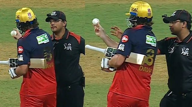 വാംഖഡെ സ്റ്റേഡിയത്തിൽ കഴിഞ്ഞ ദിവസം നടന്ന മത്സരത്തിനിടെയാണ് സംഭവം. മത്സരത്തിനിടെ പന്ത് മാറ്റേണ്ട സാഹചര്യം വന്നിരുന്നു. അംപയർമാർ തെരഞ്ഞെടുത്ത പുതിയ പന്ത് ടിം ഡേവിഡ് കയ്യിലെടുക്കുകയും നിരവധി തവണ മുകളിലേക്ക് എറിഞ്ഞ് പരിശോധിക്കുകയും ചെയ്തു.