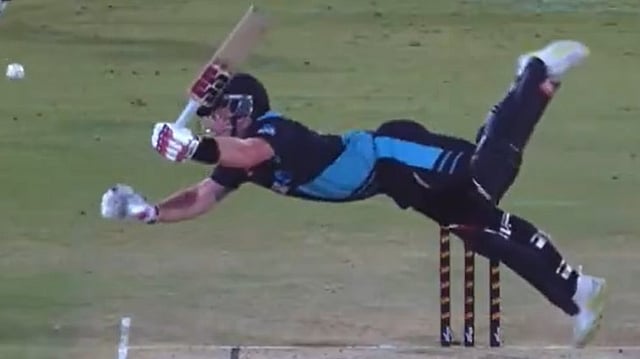 മത്സരത്തിന്റെ ആറാം ഓവറിലാണ് താരത്തിന്റെ പറന്നുള്ള റണ്ണടിക്കാനുള്ള ശ്രമം. മുഹമ്മദ് ആമിര് എറിഞ്ഞ ഓവറിലെ ആദ്യ പന്ത് സീഫെര്ട് ഫോറടിച്ചു. രണ്ടാം പന്ത് വൈഡായാണ് വന്നത്. ഈ പന്തിലും സ്കോര് നേടാനായാണ് താരം പറന്നു ബാറ്റിങിനു ശ്രമിച്ചത്. പക്ഷേ താരത്തിനു പന്ത് തൊടാന് സാധിച്ചില്ല. അമ്പയര് വൈഡും വിളിച്ചു.